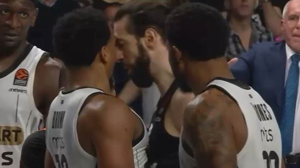 Inače vrlo temperamentni centar Partizana sada je bio priseban i postavio se između dva sukobljena košarkaša. Videlo se da je i on popričao as Šengelijom i uspeo je da ga smiri, na kraju je viđen i njihov zagrljaj. Pogledajte ovu situaciju sa meča u Bolonji: