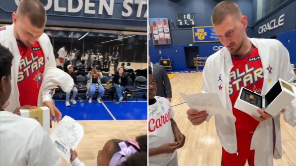 Nikola Jokić je dobio prsten za učešće na Ol-star vikendu, a od mladih navijača koji ga obožavaju dobio je i neobičan poklon. Na društvenim mrežama pojavio se snimak susreta sa dečakom i devojčicom kojima je kasnije potpisao majice, a koji su mu uručili pismo.