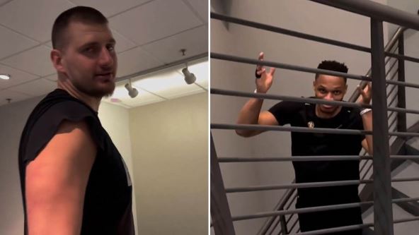 Verovatno jer je u njegovoj blizini bio Rasel Vestbruk koji je poveo pesmicu u čast slavljenika, Nikola Jokić je istakao da želi da skine njegov rekord po broju ostvarenih tripl-dabl učinaka. "Gledam unapred da oborim njegov rekord po broju tripl-dablova. I onda ću ga celog života ismevati zbog toga", rekao je srpski košarkaš, a Amerikanac se uhvatio za glavu. Pogledajte kako je to izgledalo: