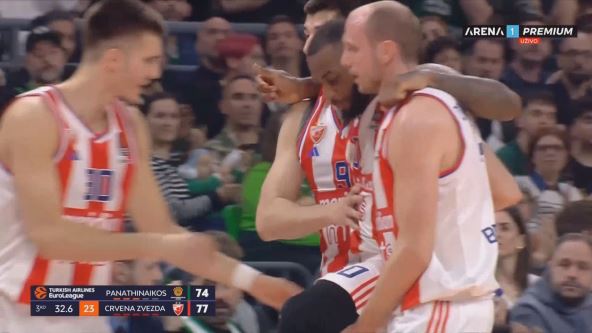 Američki košarkaš Kodi Miler Mekintajer povredio se u završnici treće četvrtine meča Crvene zvezde i Panatinaikosa u Atini. Kodi igra jednu od najboljih utakmica u sezoni, ali nažalost nije mogao da stane na noge posle izvrnuća levog skočnog zgloba, kada su saigrači morali da ga iznesu do klupe.
