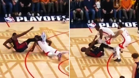Zna se već godinama da je Drejmond Grin jedan od najprovokativnijih igrača u NBA ligi, on ne bira sredstva kada treba da se stigne do pobede, a tako je bilo i ovog puta. Nakon što je krenuo u dribling i izgubio loptu, Grin je "slučajno" završio na parketu sa Tajsonom Isonom, kojem je zatim nabacio noge na glavu. Bio je to pokušaj da se izazove haos i novo koškanje - nakon što je već učestvovao u jednom. Pogledajte tu situaciju: