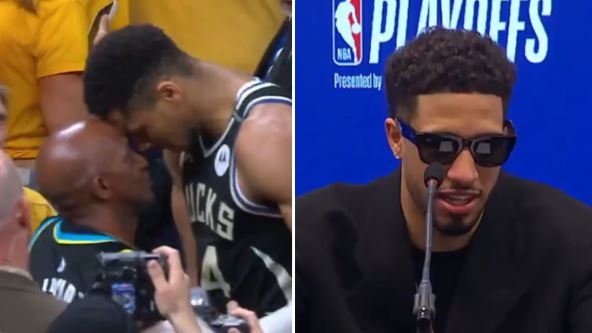 Naravno, to se nije dopalo Janisu Adetokunbu tako da je prišao Džonu Haliburtonu i počeo sa njim da se objašnjava, tako da smo videli vrlo neprijatnu scenu, netipičnu za NBA utakmice.