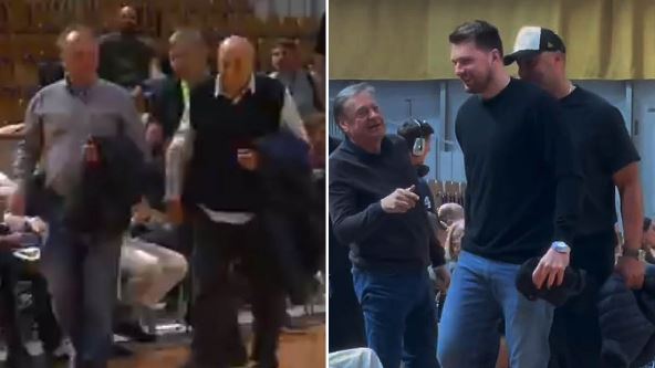 Superstar Los Anđeles Lejkersa je nedavno otkrio da će sigurno igrati za Sloveniju na Evropskom prvenstvu na leto, a pošto je ispao iz plejofa NBA lige vratio se u domovinu. On je meč završio pored terena, nije isteran, a publika je sa oduševljenjem prihvatila njegov dolazak na meč.