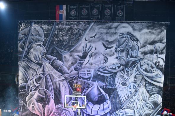Partizan je izgubio od Fenerbahčea u Areni (99:87), a meč je počeo koreografijom i posebnim banerom. U pitanju je scena u kojoj Miloš Obilić ubija turskog sultana Murata u Kosovskom boju 1389. godine. Zbog toga su iz redova turskog kluba reagovali ponoćnim saopštenjem.