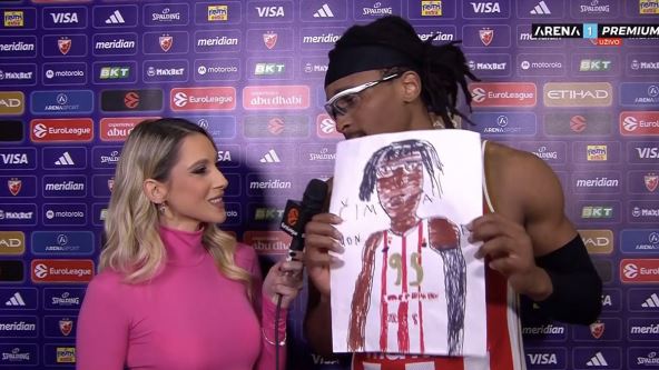 Kada je stao pred kamere posle meča, lepa voditeljka Kristina Tomić ga je pitala da pokaže šta ima u rukama, a u pitanju je bio crtež koji je dobio na poklon.