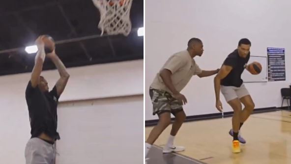 Izgleda da je jako blizu povratka na teren koji je najavljen za januar naredne godine. Sjajni centar je počeo sa individualnim treninzima, dok se na snimku vidi da vežba zakucavanja i trojke.