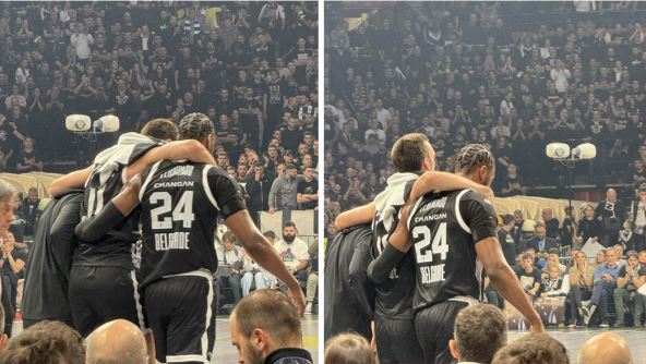 Košarkaši Partizana dočekani su zvižducima, navijači nisu slavili, već negodovali posle njihovih koševa, dok su jedini aplauze dobili bivši igrači crno-belih u Bajernu, Vladimir Lučić i Ajzeja Majk. Grobari su vređali i predsednika Partizana Ostoju Mijailovića, a na početku meča istakli su slike sa likom Željka Obradovića preko čitave dvorane.