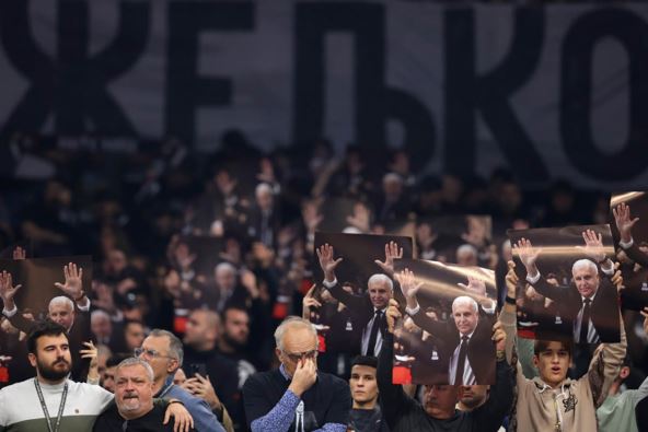 Navijači su na početku meča klicali Željku Obradoviću uz zvižduke i uvrede na račun igrača i predsednika Ostoje Mijailovića, a uz himnu crno-belih čitava dvorana je podigla slike sa likom "Žoca". Pogledajte: