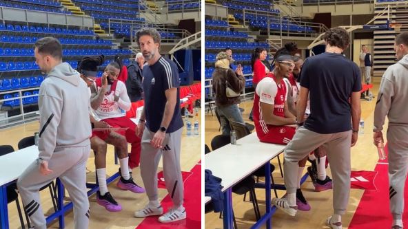 Na treningu Crvene zvezde vlada odlična atmosfera što je moglo da se vidi i kada je Kodi Miler Mekintajer prekinuo intervju Devontea Grejema. Da su raspoloženi moglo je da se vidi i nekoliko minuta pre svega toga. Čima Moneke zgrabio je tablu i odlučio da pomogne u spremanju taktike za meč sa Parizom.