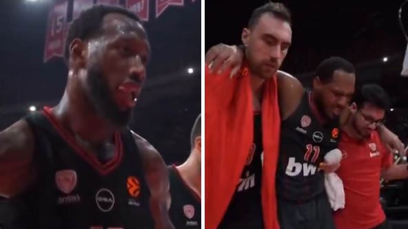 Jako ružne scene smo videli u Pireju gde su saigrači izneli Montea Morisa sa terena. Posle deset minuta u igri on je krenuo u prodor i povredio se. On je prošao pored Justinijana Jesupa iz Bajerna, dodao do Mustafe Fola, a onda pao.