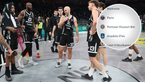 Partizan ima isti skor kao i Pariz, a iza su Efes (7-19) i Asvel koji je poslednji (6-19). Ispred crno-belih su Baskonija (9-17) i Bajern (10-15).