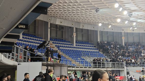 Arijan Lakić je zamolio navijače da prestanu sa skandiranjem, a nakon tri upozorenja sudija meč je prkeinut na sat vremena i nastavljen je nakon što je ispražnjen jedan deo tribina sa navijačima Partizana. Pogledajte kako je izgledala tribina nakon što je ispražnjena: