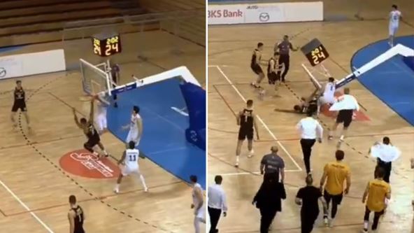 Neverovatne scene su viđene u Hrvatskoj na meču između Kvarnera i Splita gde je izbegnuta tragedija. Pri vođstvo domaćina u Rijeci 48:47 konstrukcija koša se obruđila kada je centar Splita Demaheo Vigins atraktivno zakucao.