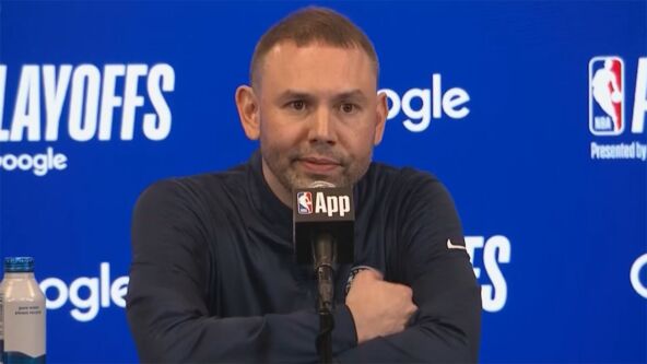 Jedno od pitanja bilo je u vezi poteza Džejdena Mekdanijelsa sa četvrte utakmice kada je odlučio da završi napad na 1,3 sekunde pre kraja iako je meč bio gotov. To je isprovociralo i Nikolu Jokića.