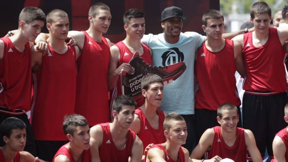 "Di-Rouz" je ostavio otisak svojih stopala i kratko popričao sa najtalentovanijim mladim košarkašima beogradskih klubova. Zajedno sa Paspaljem i Bogdanom Bogdanovićem iz Partizana bio je u žiriju takmičenja u zakucavanjima, a na kraju je izdvojio vreme za fotografisanje, gde opet nisu mogli da budu zadovoljeni "apetiti" svih posetilaca događaja.