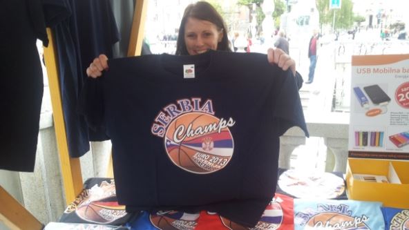 Već na Prešernovom trgu dobili smo razlog za optimizam. Simpatične devojke prodaju na jednom od štandova majice sa nalepnicom: "Srbija šampion(i)!".