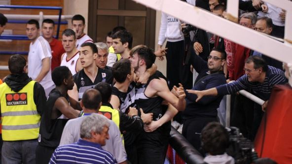 Krilni centar crno-belih našao se u drugom poluvremenu u neposrednoj blizini Ivana Smiljanića i posle kraće rasprave bio udaren, kada je do njega dotrčao suspendovani plejmejker "pantera" Slobodan Dunđerski.