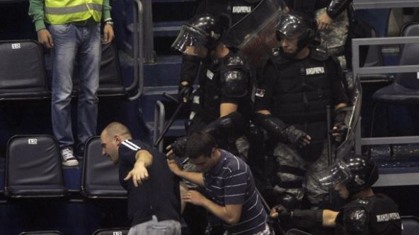 Košarkaši Zvezde pobedili su sinoć Partizan 97:88, a meč su obeležili prekidi, tuča i pražnjenje hale Pionir.