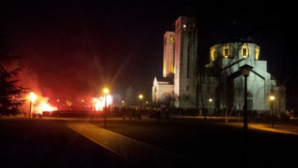 Nešto pre 19 časova stvorena je tenzija, došlo je prvo do guranja, potom su poletele upaljene baklje, ali i kamenice, kada je došlo i do oštrog fizičkog obračuna dve strane.