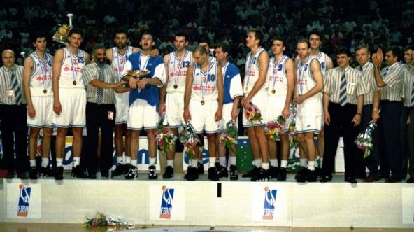 Šampionski tim: Dejan Bodiroga, Predrag Danilović, Saša Obradović, Zoran Sretenović, Žarko Paspalj, Miroslav Berić, Aleksandar Đorđević, Željko Rebrača, Vlade Divac, Zoran Savić, Dejan Tomašević, Dejan Koturović.