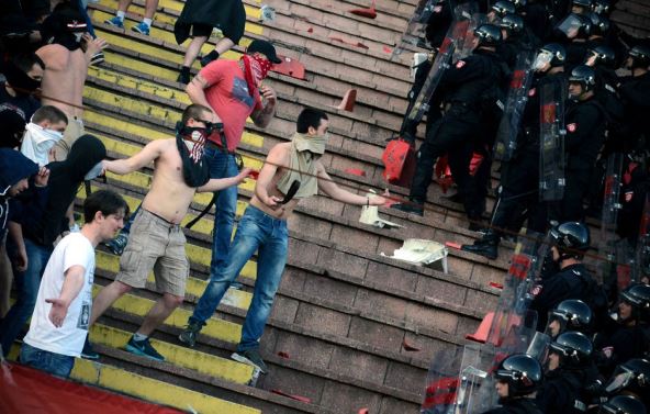 Policija je brzo intervenisala i dala se u potragu za huliganima. Oko hale je opšta jurnjava i bežanija navijača dva kluba i pripadnika javnog reda.