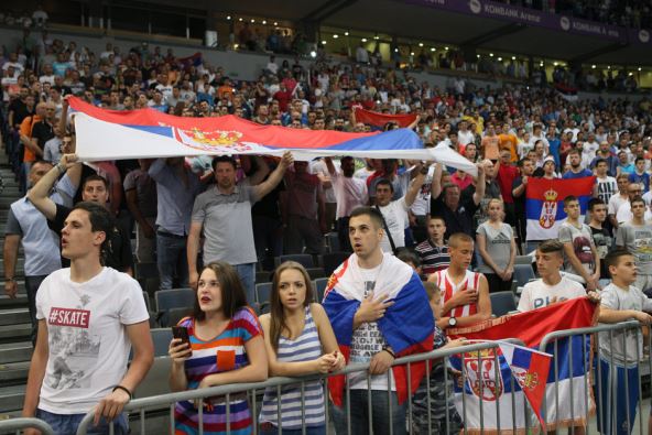 Košarkaši Srbije su u subotu protiv Francuske imali solidnu podršku navijača u Areni.