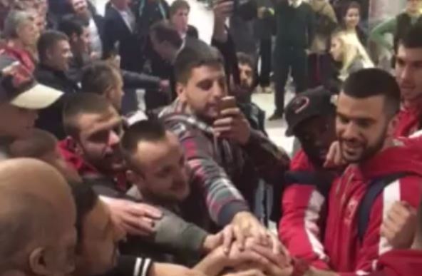 Grupa od oko 30 navijača Zvezde dočekala je košarkaše na aerodromu i pružila im podršku uoči mečeva godine - u finalu ABA lige protiv Cedevite.