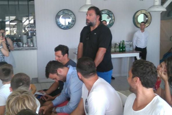U restoranu na Adi Ciganliji, Mitrovića su podržali treneri Dejan Savić, Vladimir Vujasinović, saigrači Živko Gocić, Filip Filipović, Slobodan Soro... Pored njih, u publici je tokom zanimljive konferencije bila i olimpijska i svetska šampionka u taeokvondu, Milica Mandić.