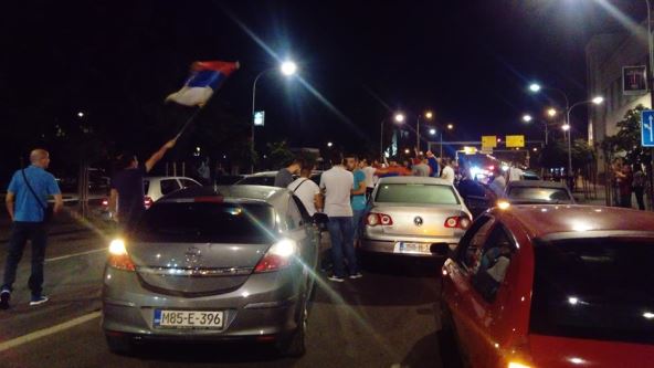 Banjalučani su se i u subotu kasno uveče okupili u ulici kralja Petra Prvog Karađorđevića, ali sada pored zgrade Narodnog pozorišta Republike Srpske, pošto je deo ulice koji se proteže pored Trga Krajine zatvoren za saobraćaj.