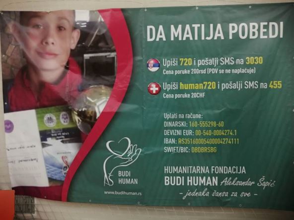Matija ima 11 godina i u avgustu 2019. godine mu je dijagnostikovan zloćudni tumor dugih kostiju. Dečak je započeo proces lečenja hemioterapijom.
