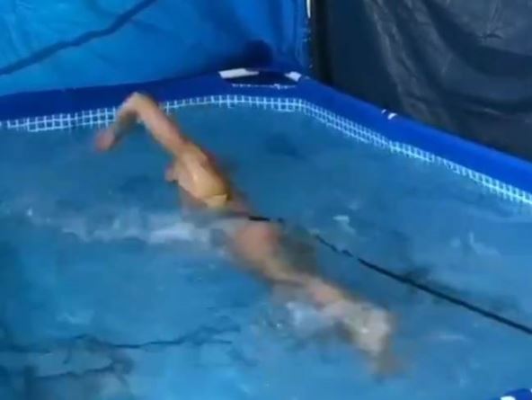Obezbedila je bazen za dvorište, dosta improvizovala, ali uspela da sebi omogući trening. Uporna je i to će joj se sigurno isplatiti kada god bude dozvoljeno da se vrati u pravi bazen.