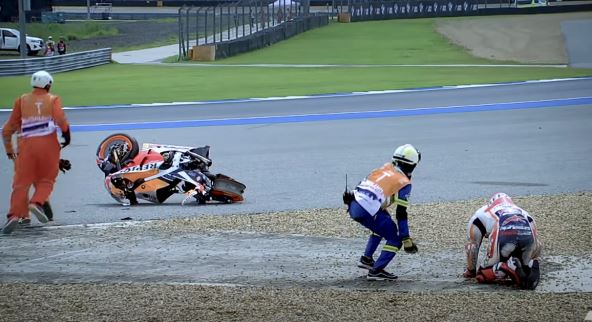 Domaći as i svetski šampion Mark Markez (27) doživeo je tešku povredu kada je pao sa svoje Honde i slomio ruku. Doživeo je prelom ramene kosti i moraće u utorak na operaciju u Barseloni.