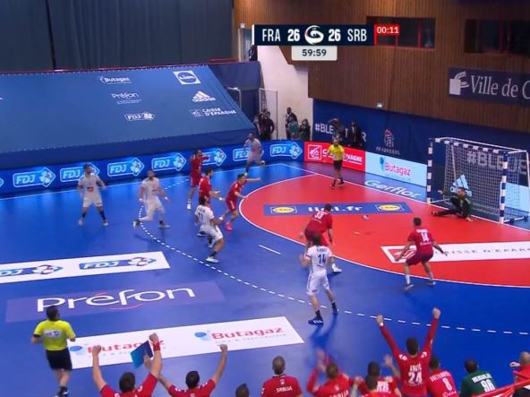 Ta poslednja dva minuta su "orlovi" morali da igraju sa igračem manje i da napadaju bez golmana među stativama, a Francuzi su povrh svega na 18 sekundi do kraja dobili taman dovoljno vremena za poslednji napad na meču.