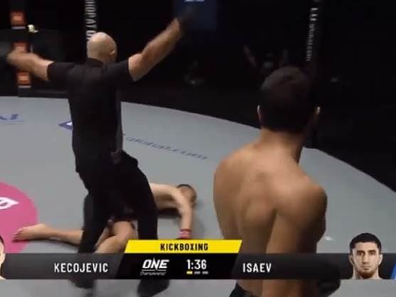 Rus je strahovitim desnim krošeom pogodio Kecojevića u bradu, pa je iste sekunde Srbin ostao bez svesti, pa sudija nije imao kud nego da prekine borbu.