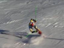 Prvo je okrenut leđima uspeo da se dočeka na noge, a onda da okrene skije pri ogromnoj brzini i ukoči, tako da nije završio čak ni u mreži koja stoji pored terena i na kraju je samo bio razočaran što nije završio trku.