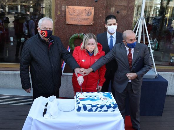 Na spomen ploču predsednik OKS Božidar Maljković položio je lovorov venac, intonirana je himna Srbije, a zajedno sa ministrom Vanjom Udovičićem isekao je rođendansku tortu. Maljković je istakao da uzvišene ideje koje nosi olimpijski pokret od samog početka moraju ostati vodilja i u današnjim vremenima.