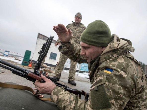 Legendarni bokserski šampion Vitalij Kličko, sada gradonačelnik Kijeva, učestvovao je sa kolegama političarima u vojnoj vežbi, navodi nemački dnevnik Bild.