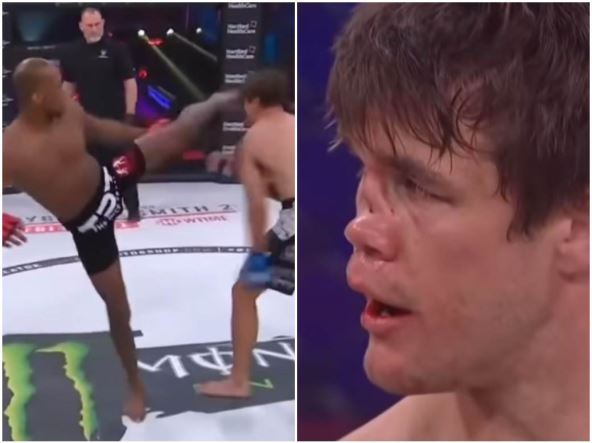Andreson je ustao, izdržao do kraja runde, ali onda su lekari u pauzi procenili da meč ne može da se nastavi, jer mu je nos bio potpuno sravnjen!
