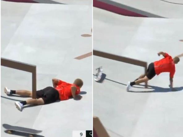 Skejter iz Perua je bio pred sam kraj svog nastupa i očigledno se opustio i izgubio koncentraciju i samo nekoliko sekundi pred kraj daska mu je odletela ispod nogu.