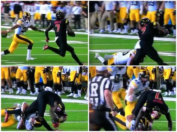 Dok je pokušao da osvoji jarde za svoj tim i bio u trku na njegovu nogu je skočio jedan od protivničkih igrača i dogodila se zaista užasna povreda. To možete da pogledate i na slikama i snimku ispod, uz upozorenje da je uznemirujući sadržaj.