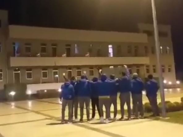 Reprezentativci koji nisu u izolaciji okupili su se ispred "karantina" u Staroj Pazovi. Dom Fudbalskog saveza Srbije trenutna je baza Orlova pred put u Segedin, a pod prozorom zaraženih igrača ostatak reprezentacije otpevao je poznatu pesmu Baje Malog Knindže.