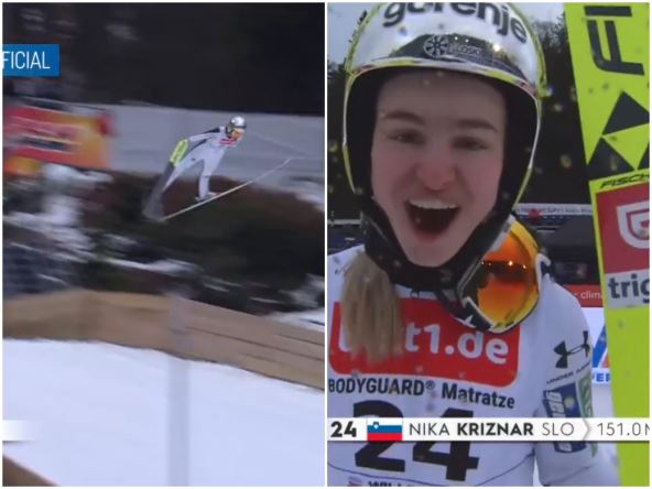 Nika Križnar je letela 151 metar, odnosno metar preko crvene linije i tako napravila najbolji skok u istoriji Slovenije, što se tiče ženske konkurencije.