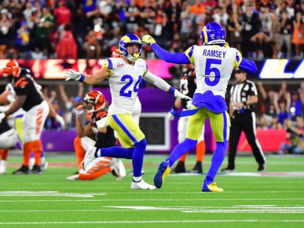 Sjajni defanzivni tekl uhvatio je Džoa Buroa na četrdesetak sekundi do kraja na četvrtom pokušaju i to je bilo to - Lombardi trofej je ostao u Los Anđelesu!