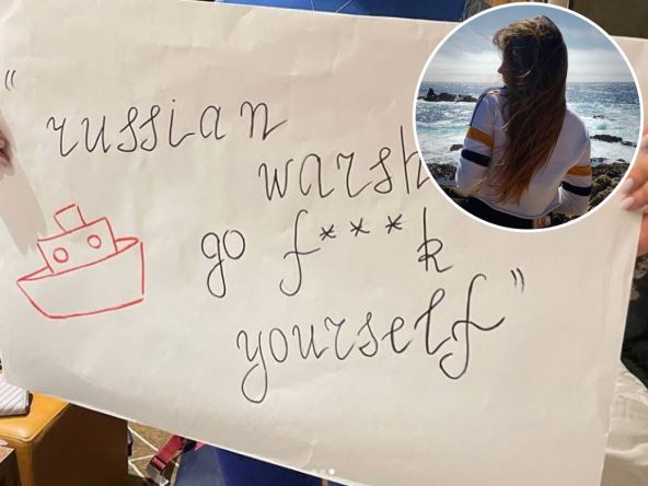"Je*ite se ruski ratni brodovi", pisalo je na transparentu sa kojim je ona izašla na borilište!