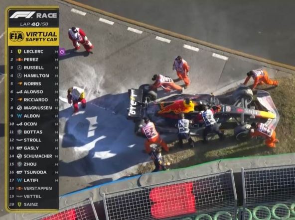 Iskočio je na vreme, pre nego što je bolid počeo da gori, a potom su redari brzo dotrčali kako bi zaustavili požar. Pomagao im je i Ferstapen koji je bio potpuno razočaran zbog novog fijaska sa bolidom.