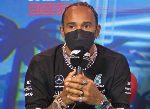 Hamilton se na konferenciji pojavio sa prstenom na svakom prstu, tri sata i nekoliko narukvica. Uz to imao je i pirsing u nosu koji ne može da skine čak i kada bi hteo.