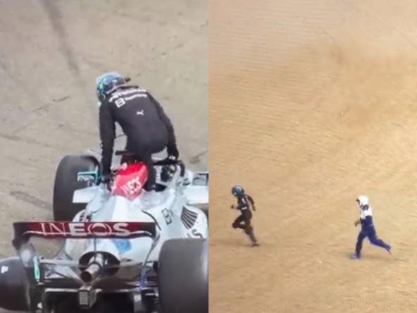 Iako je Britanac imao oštećenja na svom bolidu, jasno je da se on nekoliko desetina metara daleko od mesta incidenta zaustavio iz sasvim drugih razloga. Rasel je stao i izleteo iz bolida kako bi pritrčao bolidu svog kolege i eventualno mu pomogao da izađe iz vozila.