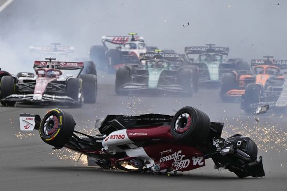 Strašan udes vozača Formule 1 Guanju Džoua na stazi u Silverstoun bacio je u drugi plan i trku i sve što se na njoj događalo nakon tog strašnog prvog kruga. Kinez se sa bolidom prevrnuo na stazi i pri velikoj brzini išao pravo na gledaoce, usput preskočivši i ogradu.