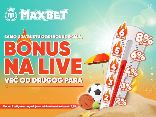 Iskoristi jedinstvenu priliku i nikad jači MaxBet bonus i zaradi na dobitnom live tiketu! Tokom celog avgusta očekuju te fantastični bonusi, već od drugog para!