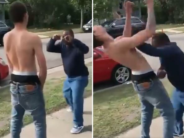 Ulična tuča postala je viralna na društvenim mrežama. Jedan mladić skinuo je majicu i prozivao znatno starijeg tamnoputog čoveka i onda je dobio - nokaut! Šepurio se pred njim, držao ruke spuštene, pokazivao koliko je jak, pa je onda naučio lekciju na težak način. Čak su ljudi koji su se nalazili okolo pokušali da odvoje starijeg gospodina od mladića, ali ni on nije hteo da se skloni.